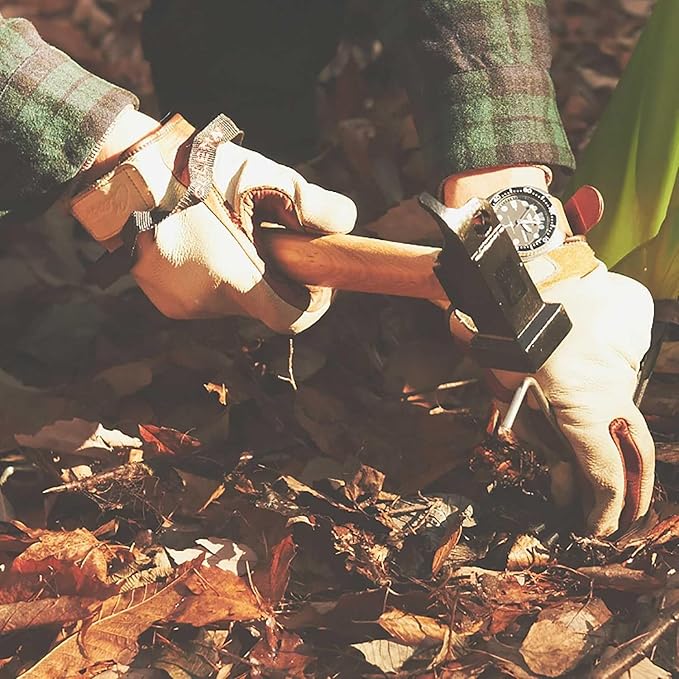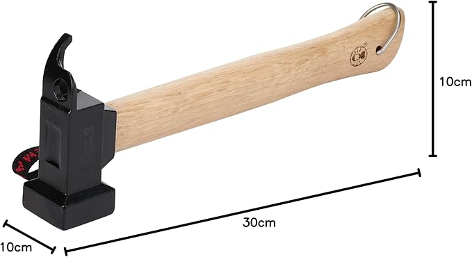 【握りやすいシャフト】手触りの良い木製シャフト(柄)はグリップエンド部分が太く設計されています。ハンマーを振りおろす時に握りやすく力を込めやすい形状となっています。