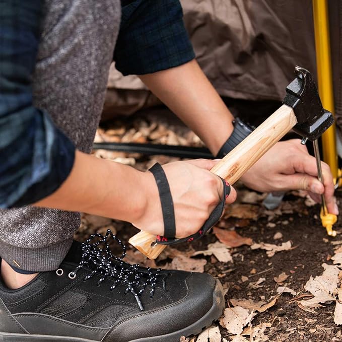 【使用シーン】テントやタープの設営・撤収時に活躍するペグ用ハンマーです。特に地面が固い場合や、鍛造ペグなどの頑丈なペグを使用する際に便利です。