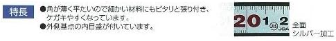 精度●直角度:100mmにつき、0.1mm以下●長さの許容差: 0.2mm以下 表目盛●長枝:外目盛1尺内目盛7寸●短枝:外目盛5寸内目盛3寸