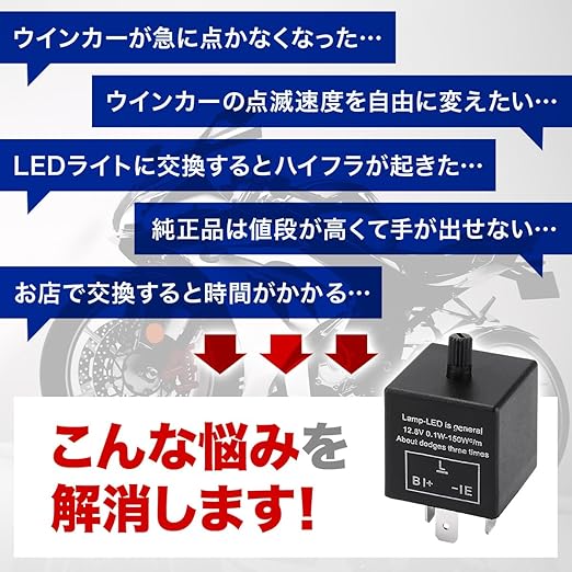 【速度調整可能】ウインカー の点滅速度を無段階で調整可能。 SMDチップ内蔵、ウインカーの点滅動作がより安定します。
