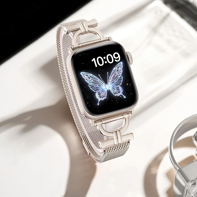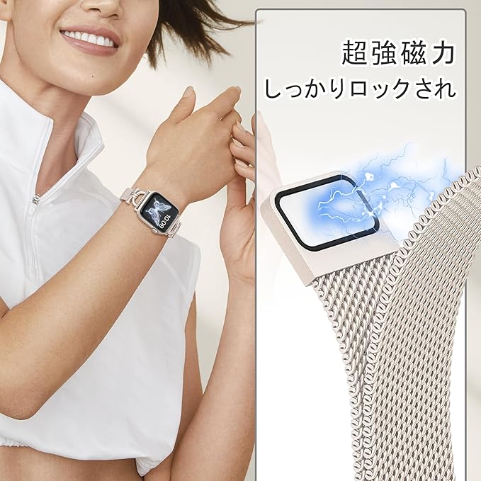Bokoios おしゃれマグネットバンド互换アップルウォッチ バンド42mm 41mm 40mm 38mm コンパチブルApple Watch バンドステンレス 互换アップルウォッチバンドスポーツ蒸れない コンパチブルアップルウォッチ ベルトレディースかわいい iWatch バンド互换Apple Watch 10 バンドSeries 10 SE 9 8 7 6 5 4 3 2 1-スターライト | oioioichan