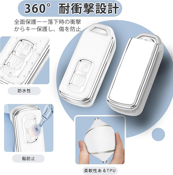 【スマートキーをしっかり守る】超軽量、光沢感のある柔軟なTPU素材です、摩擦に強く、割れにくく、軽くて長持ちし、車のキーをキズや摩耗を防止、柔軟性と他の物理性能を保ちます。鍵のボタンも押しやすく、寒い冬に手のひらに持っていても冷たく硬い感じは全然しません!リモコンの表面と角を柔軟TPUで保護、落下の衝撃などから大事なスマートキーをしっかり保護します。