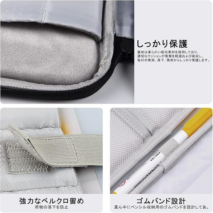 耐衝撃性の柔らかい裏地: 特に柔らかく帯電防止の柔らかい裏地のタブレットスリーブケースは、適切なクッションが衝撃を軽減および吸収し、毎日の衝突、落下、衝突からしっかり保護します。