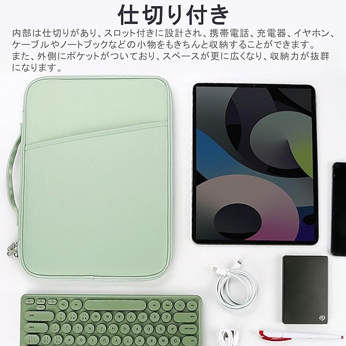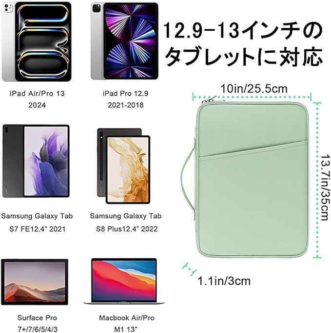 タブレット スリーブケース 12.9 インチ iPad air キャリーバッグ 耐衝撃 撥水加工13インチ iPad Air M3 M2 2025-2024 13-12.9インチ iPad Pro ケース M4/M2/M1 6 5 4 3世代 2024-2018 Galaxy Tab S8 Surface Pro Surface Laptop Go 3 等対応 (グリーン) | oioioichan