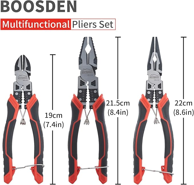 【多機能工具セット】190mm強力ニッパー、211mmペンチ、211mmラジオペンチ、この多機能工具セットはさまざまな電気配線作業に対応する優れたツールです。