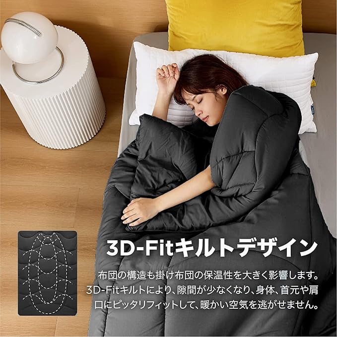 掛け布団 ダブル 暖かけ布団 ブラック 高級掛け布団 - 暖かい 洗える 通気性 超軽量 抗菌防臭 ふとん シングル 190x210cm - 快適な睡眠を提供する 2.4kg | oioioichan
