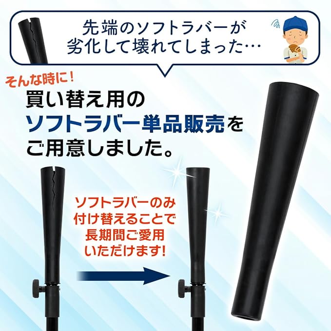 ⚾【ご案内】当店の対応バッティングティー以外の商品に取り換えられるかは.できませんので、ご注意ください。また、壊れたソフトラバーにつきましては、お住いの地域のルールを遵守していただきますようお願いします。