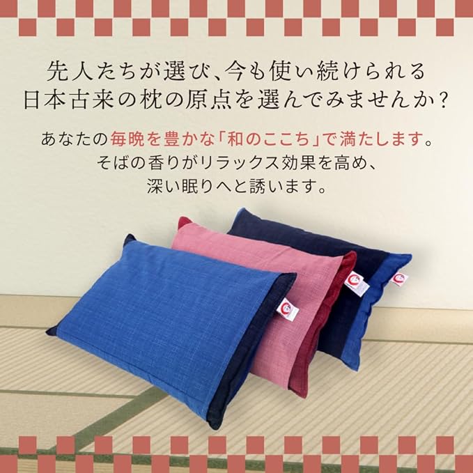 【和モダン】日本の美意識を感じさせる、和室にも洋室にもマッチする和モダンデザイン。あなたの毎晩を豊かな「和のここち」で満たします。蕎麦の香りがリラックス効果を高め、深い眠りへと誘います。一日の疲れを癒し、毎日の睡眠を快適なものに。