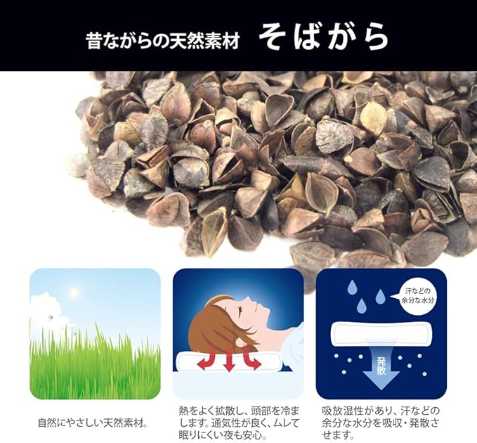 【注意事項】蕎麦アレルギーの方は使用を控えてください。定期的な天日干しを行ってください。お買い上げ後はすぐに袋から出し、湿度の高い押し入れなどでの保管は避けてください。