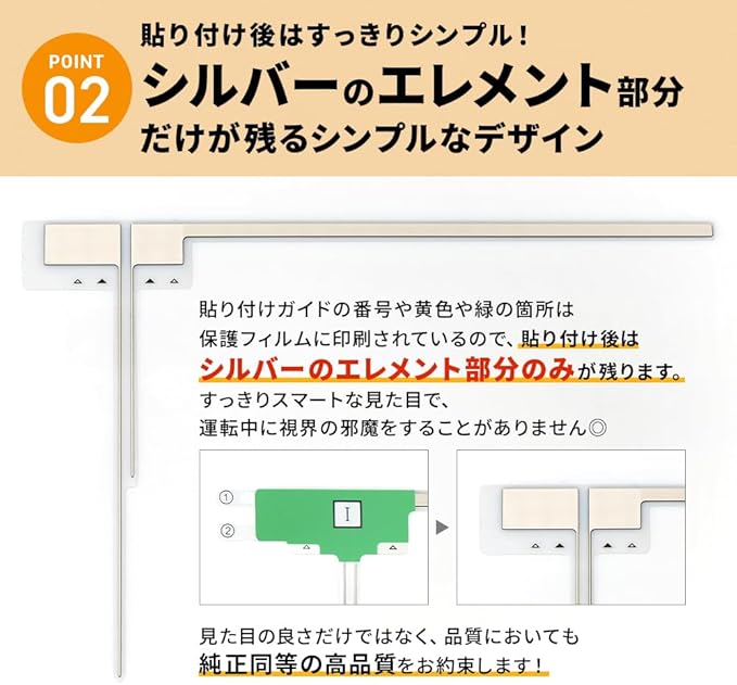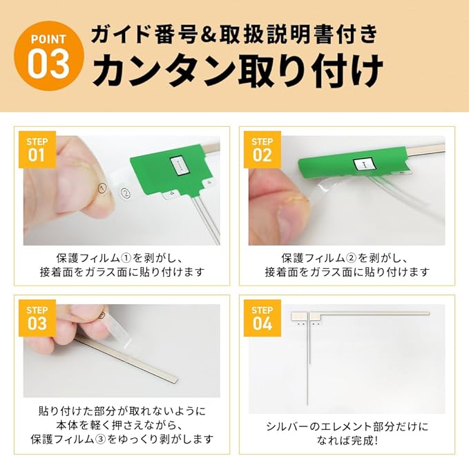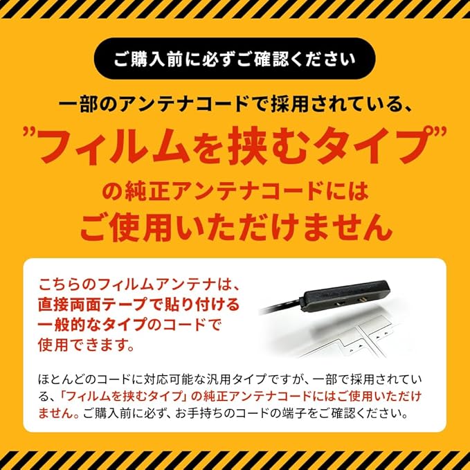 ・商品内容----------------------- L型フィルムアンテナ【1】x2 L型フィルムアンテナ【2】x2 サイズ:約縦94mm 約横141mm 両面テープ 4 サイズは画像をご確認ください。 説明書x1 クリーナーx1