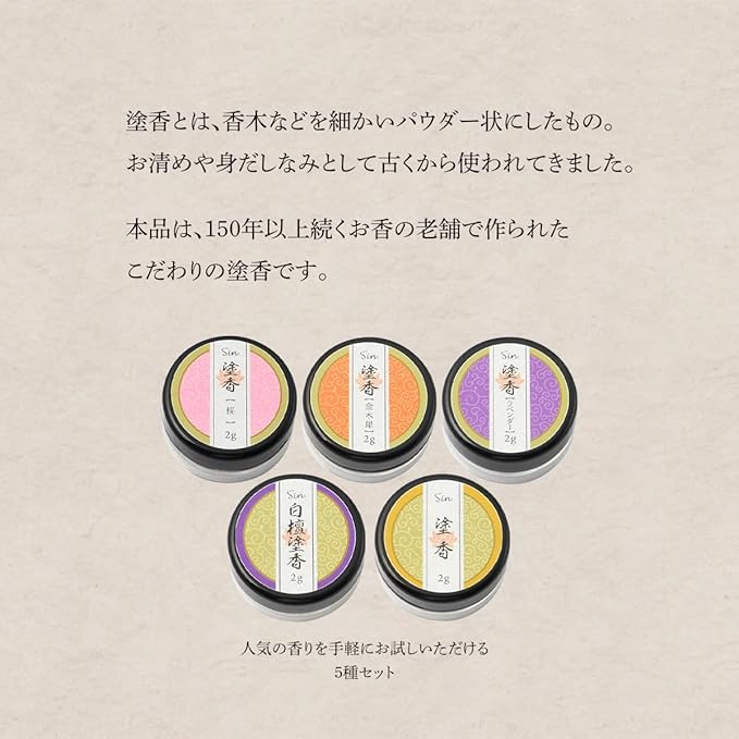 150年以上続くお香の老舗で作られたこだわりの塗香です。