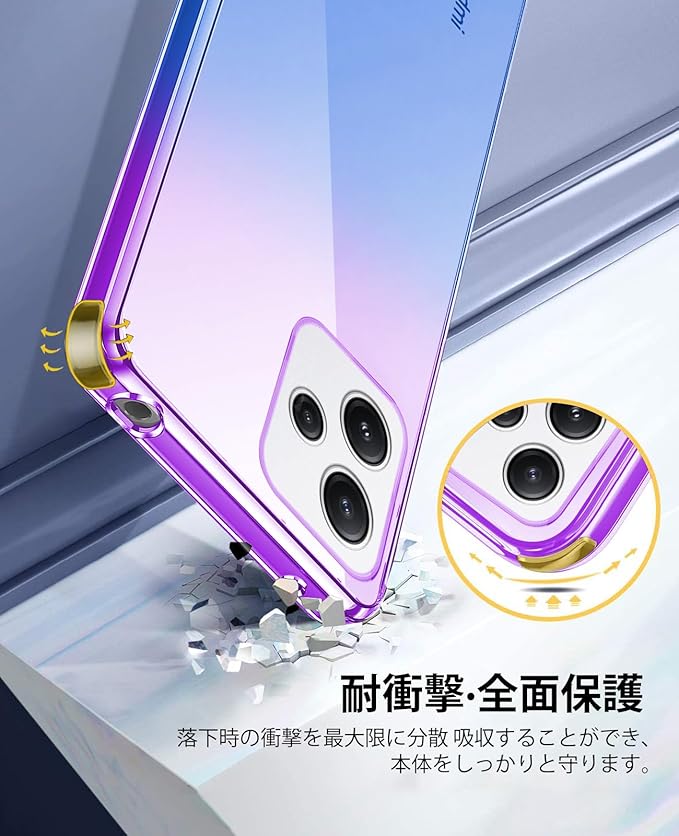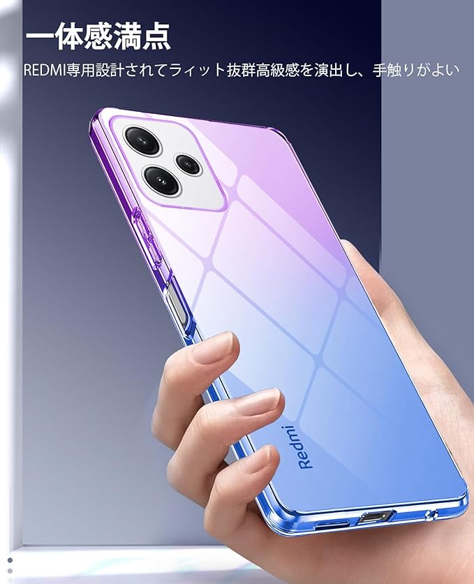 【オシャレで高級感ある外観】Redmi 12 5G用ケースはグラデーションのデザインで、端末の色により、違う色効果を現れ、Redmi 12 5Gの美しいデザインをより一層印象づける魅力がある。本体とピッタリ密着して違和感がない一体感がすごく格好いいです。