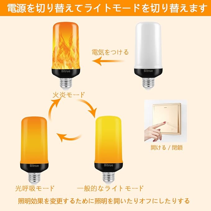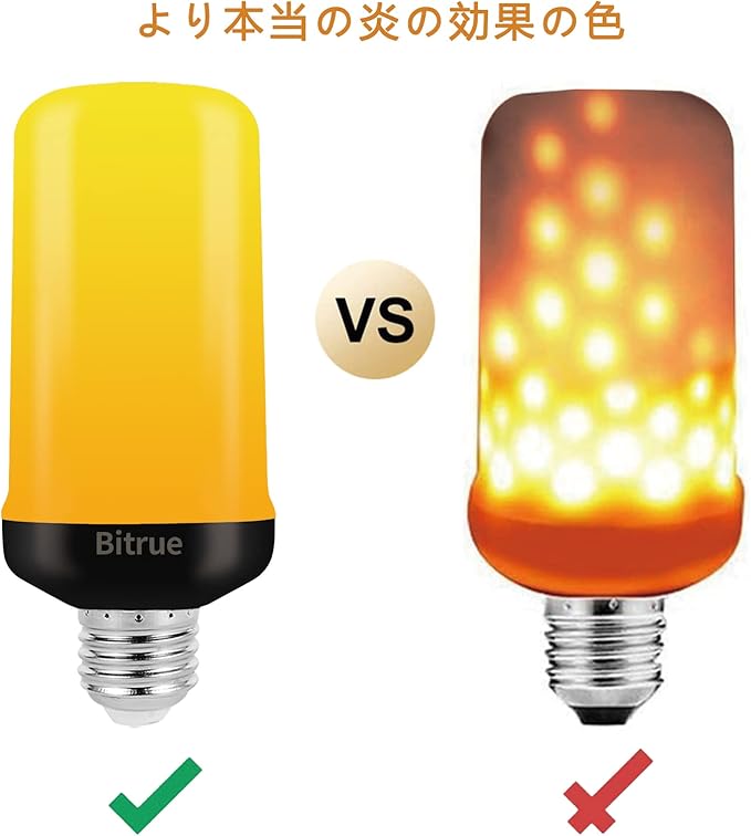 最新バージョンアップ バルブデザインがリアルな炎のブレをリニューアルし、よりリアルな炎効果を発揮するよう設計されています。 従来の製品より、使用寿命が40%延長でき、ランプの明るさは30%アップ、電球は20%低減できます。 当社のビデオは、現実生活で撮影されています。当社の製品はPSE認定に合格しており、経済産業省でMETI提出を行っています。 まずご覧いただき、ご購入を宜しくお願い致します(重要)