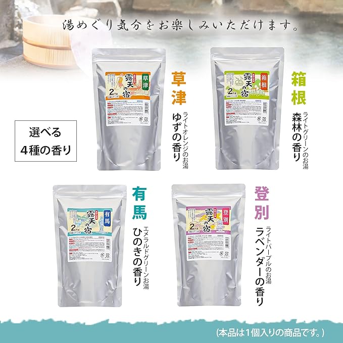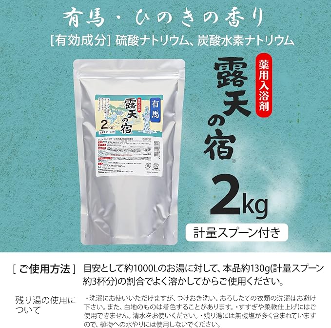 露天の宿は温泉の持つ含有成分を配合した薬用入浴剤です。
