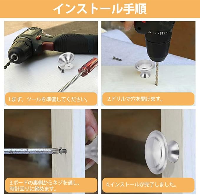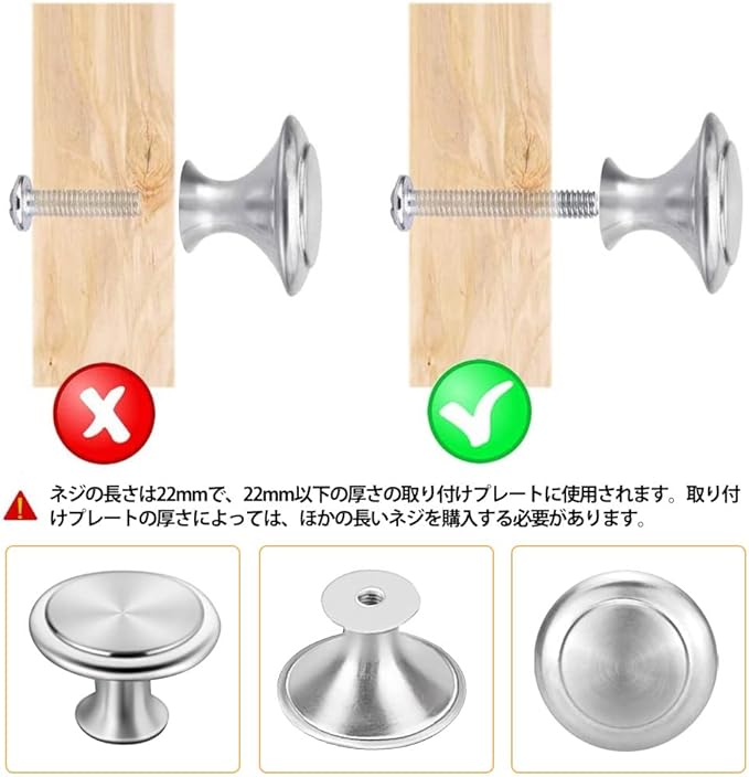 【ドリル1本で簡単取付】付属の22mmネジで誰でも簡単設置。下穴を開け、裏からネジを通して締めるだけ!プレート厚さに合わせたネジ長さで、初心者でも失敗しません。