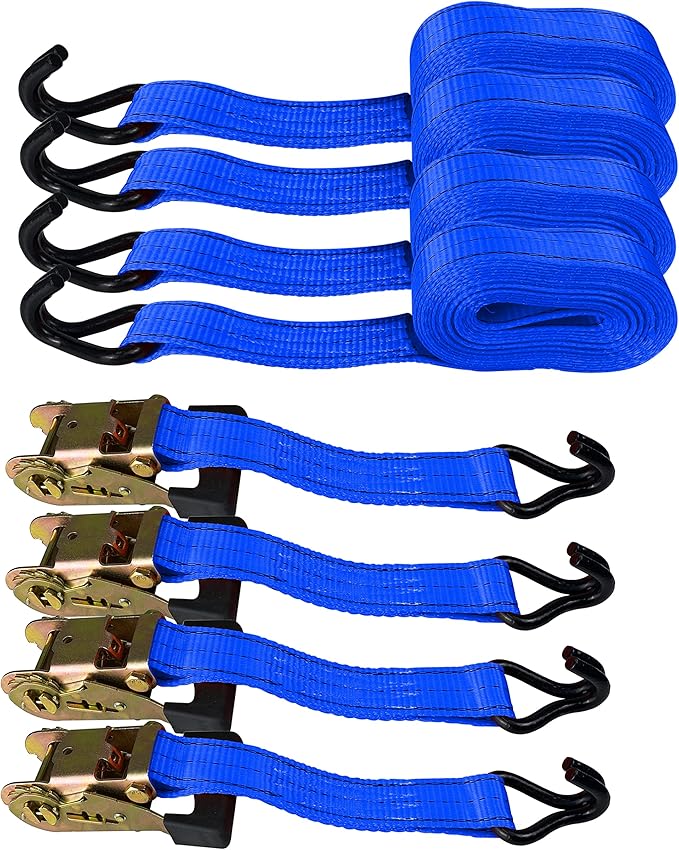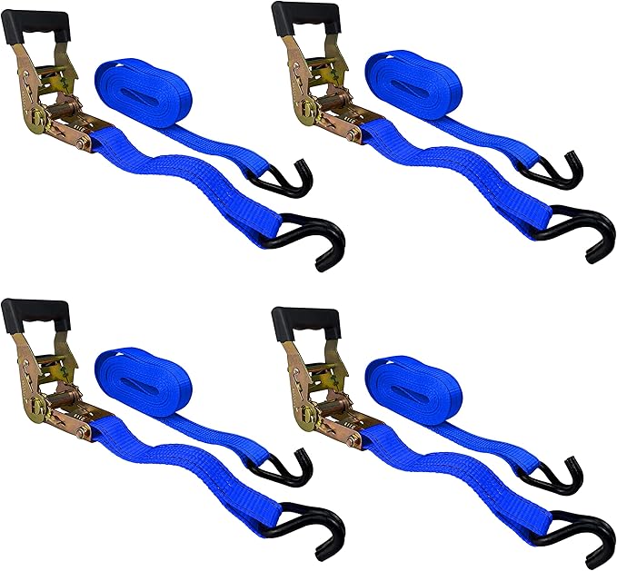 [サイズ]:4個 1-1/2インチ x 15フィート 高耐久ラチェットカーゴタイダウンストラップ 3000ポンド デュアルJフック 長さ1から15フィートまで調節可能; 破断強度3,000ポンド;