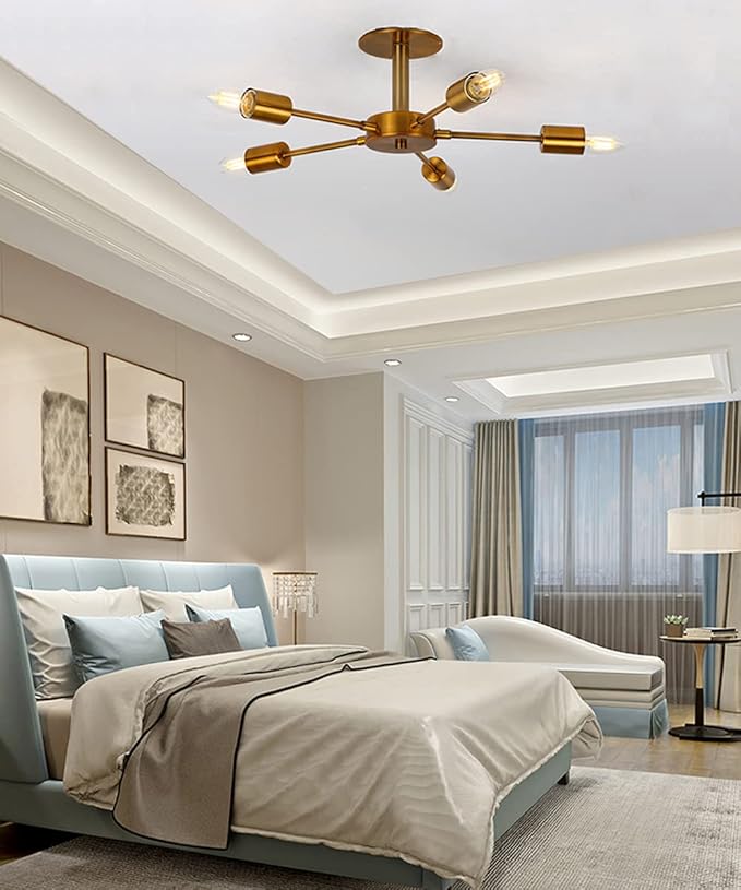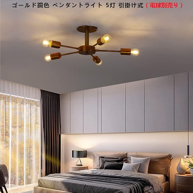 Herischen ペンダントライト ゴールド銅色 北欧風 アンティーク レトロスタイル 天井照明 照明器具 引掛け式 工事不要 リビング キッチン 居間 食卓 LED対応 6畳 8畳 E26の電球(別売り)… (銅色5灯) | oioioichan