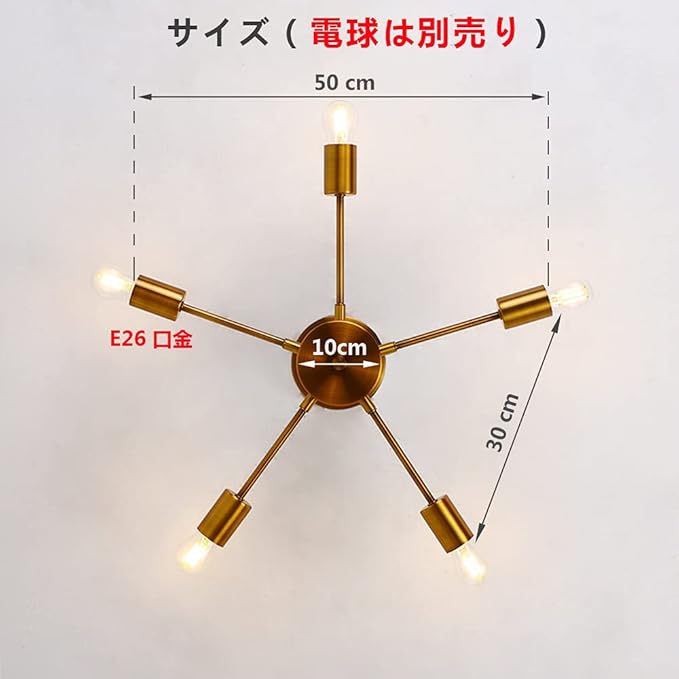 【ゴールド銅色の本体】ペンダントライト5灯は高品質の金属で作られている、高級なゴールド銅色、お値段以上の幸福感をきっともたらしてくれます。サイズ:約50 50 15cm「定格電圧」85-250V「重量」約1.3kg。電球対応:E26(電球は付属しません)日本説明書付き。