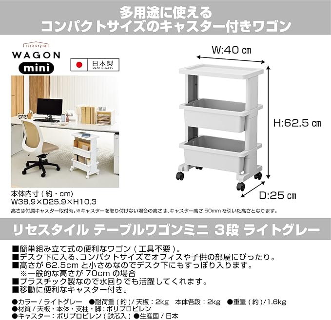 耐荷重(約):天板2kg、本体1段あたり2kg