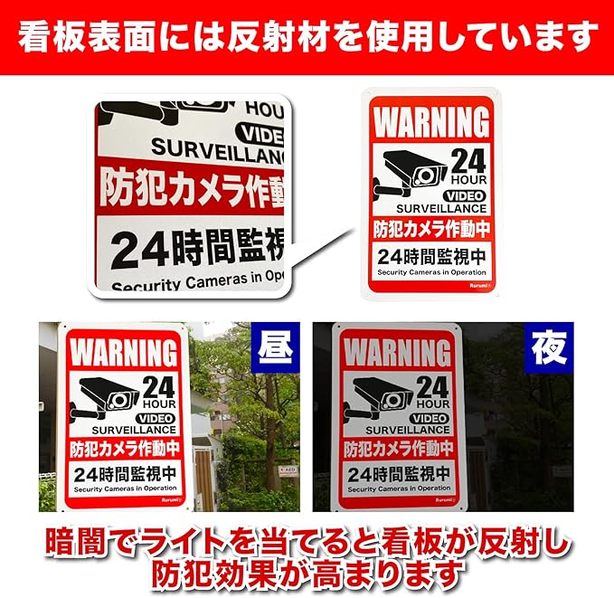 看板表面には反射塗料が使われているので、暗闇でライトを当てると看板が反射し、防犯効果が高まります。