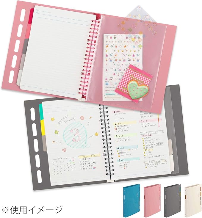 【付属内容】ラミネートタブインデックス5山、6mm横罫ルーズリーフ10枚、クリアポケット1枚 【表紙】PP(0.7mm厚)
