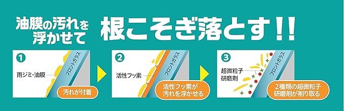 活性フッ素で汚れを浮かせて2種類の超微粒子研磨剤で削り取る