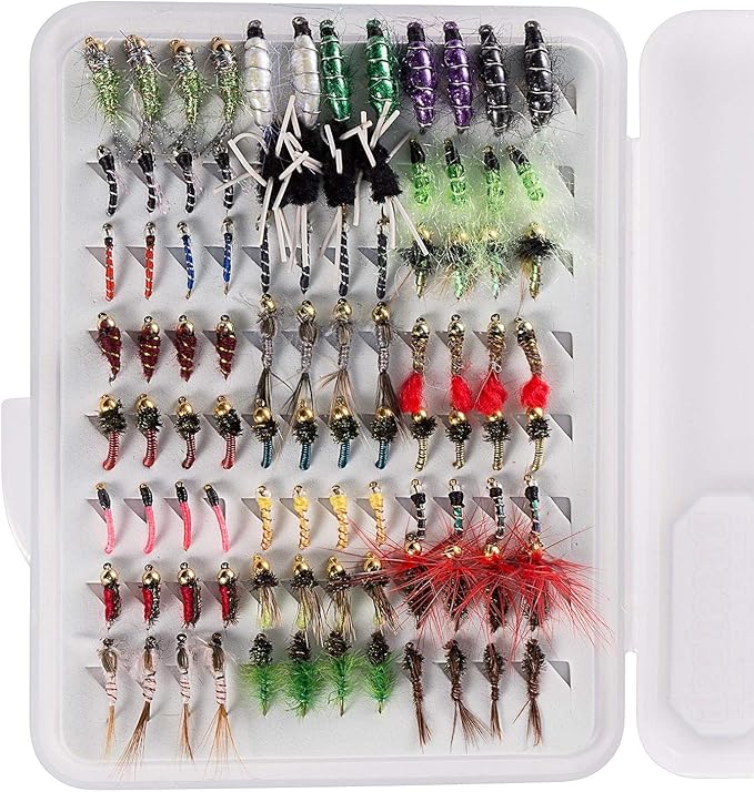 Bassdash Fly Fishing Flies Kit Fly Assortment Trout Bass Fishing with Fly Box, 36/64/72/76/80/96pcs with Dry/Wet Flies, Nymphs, Streamers, Popper | oioioichan