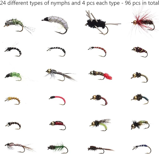 色 96 pcs nymphs kit with ultrathin fly box