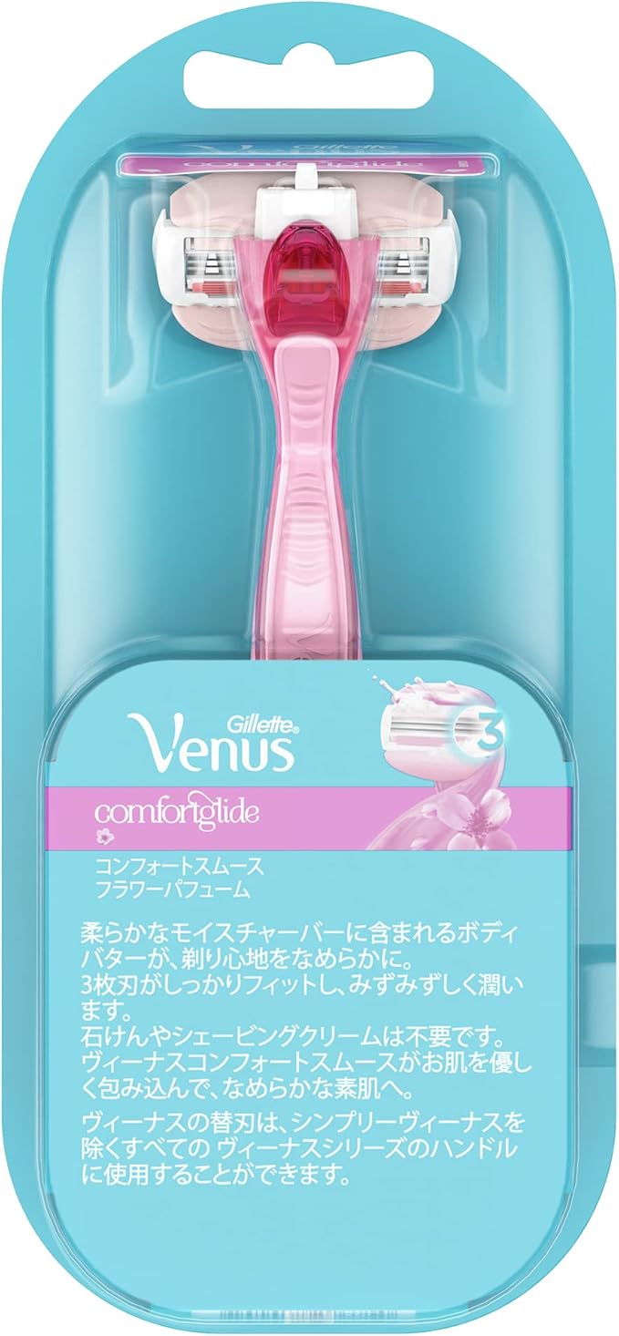 特徴 泡立つソープ付き、フラワーパフュームの香り、3枚刃