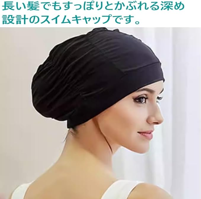防水性能: 水の浸入を防ぎ、髪の毛を完全に覆うデザインで、泳ぎやすくなっています。