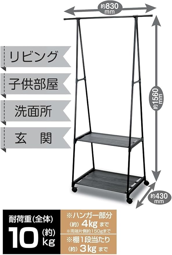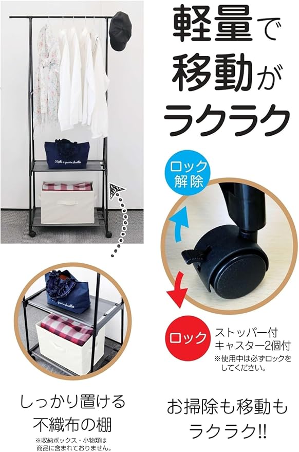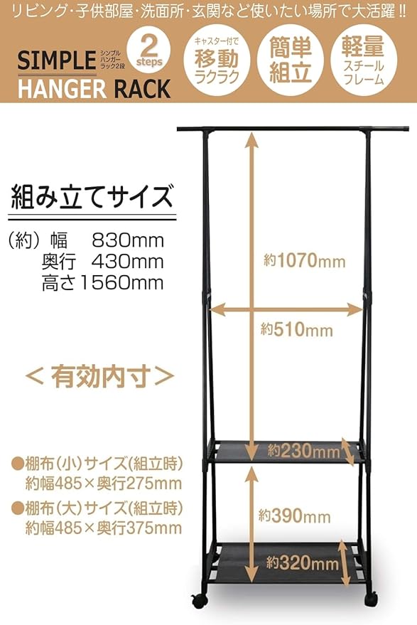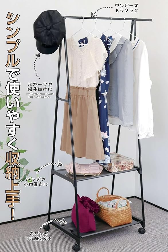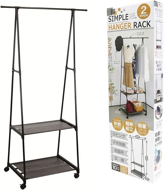 AiS to you シンプル ハンガーラック 2段 キャスター付き 幅83cm 奥行43cm 高さ156cm 収納 衣類収納 マルチ ワードローブ スリムラック 棚 軽量 移動 らくらく おしゃれ 省スペース 簡単組立 工具不要 衣類 整理整頓 洗濯 リビング 子供部屋 | oioioichan
