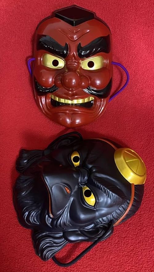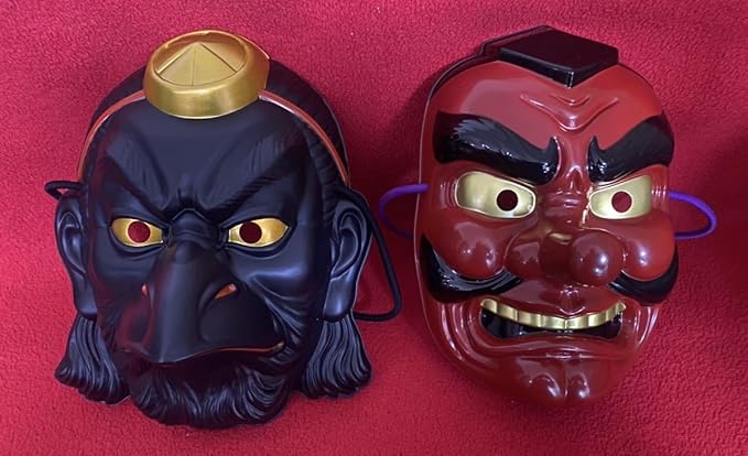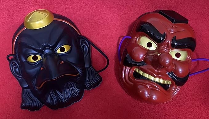 日本の伝統美「お面」祭り 縁日に!赤い天狗面& 烏天狗の面/伝説上の神とも妖怪ともされる伝説上の山伏