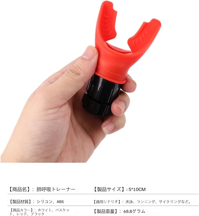 呼吸運動トレーナー、肺活量測定肺エクササイザーデバイス、ポータブル肺エクササイザーエキスパンダーデバイス肺容量腹部調節可能な抵抗、シリコンマウスピース付き ブラック