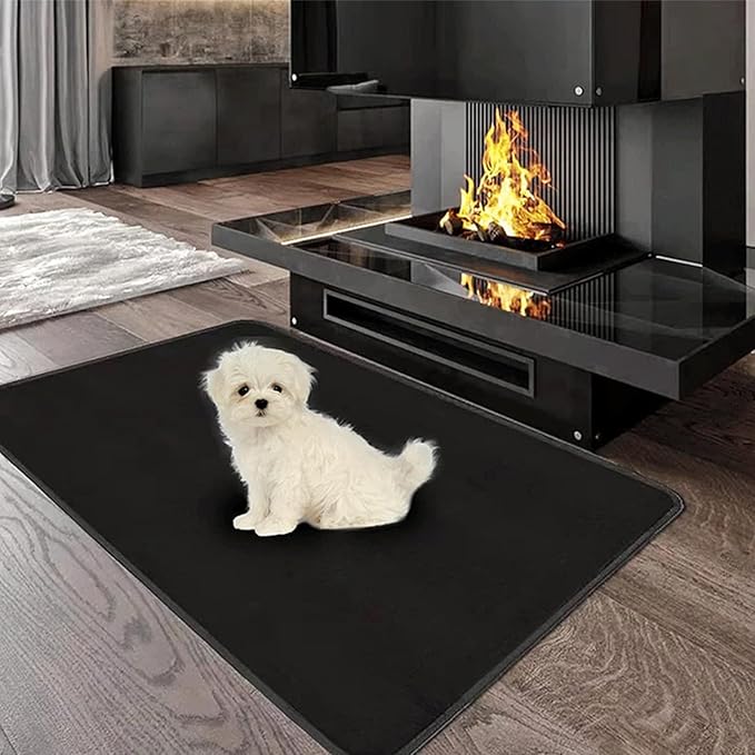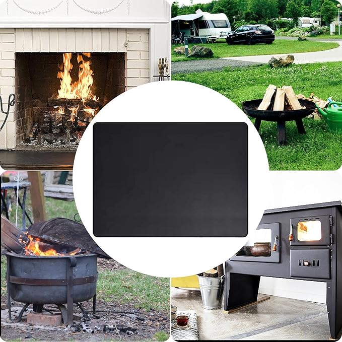 ↷最大限の防火性: 難燃性のシリコンコーティングされたグラスファイバーと難燃性膜で作られた当社の暖炉マットは、火災安全のための投資です。耐火性に優れているので、火災事故を防ぎ床面を守ります。