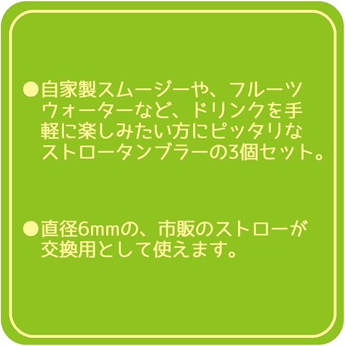 セット内容・付属品:タンブラー3個+フタ3個+ストロー3個<br>市販の直径6mmの ストロー が交換用として使用可能