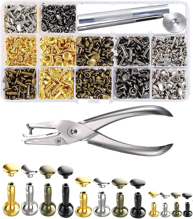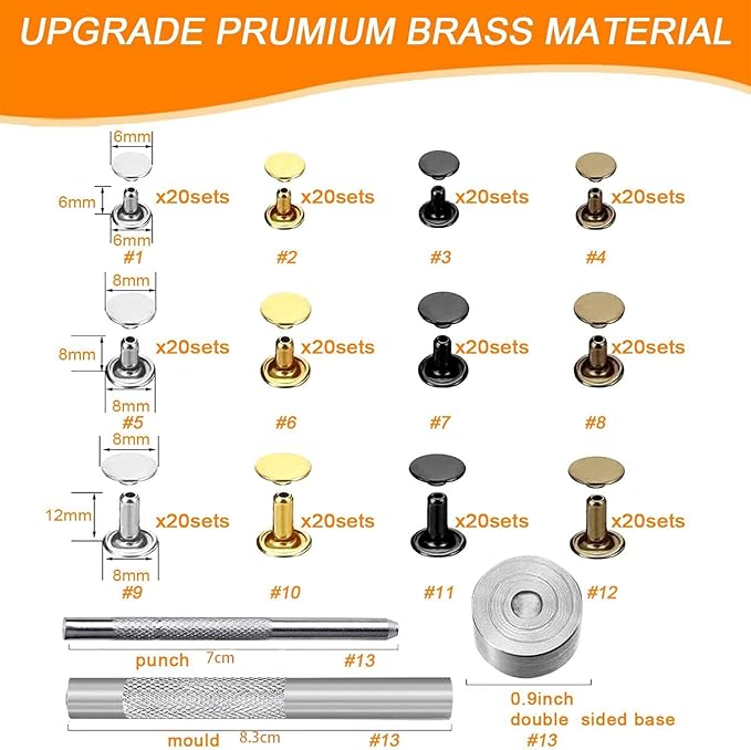 【使いやすい】このカシメ金具は手芸、修理用スタッズ セットです。手芸用スタッズセットで、6/8/12mmのスタッズを取り付けるのに便利な工具とスタッズのセットです。使い方も簡単なので、初心者からプロまで、革製品やハンドメイド作品のデコレーションに気軽に使えます。