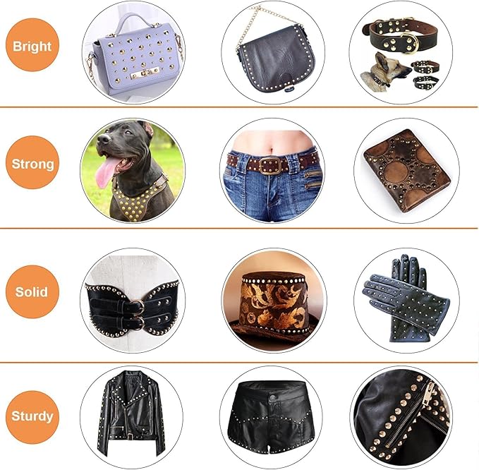 【高品質】カシメセットはスタッズは丈夫で耐久性が強い銅材料で作られて、穴あけパンチ、打ち棒は高品質の炭素鋼素材で作られています。輝いています、華やかなで仕上がりが美しい印象を与えてくれる。レザー工芸品はきれいに見えます。鞄に付けるなら何度も開け閉めをするので丈夫で長持ちする金属製のスナップボタンがよい、光沢もあります、レザー工芸品はきれいに見えます。