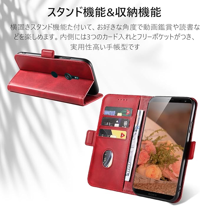 KWATUNG xperia xz3 ケース 手帳型 レザー シンプル おしゃれ sov39 ケース 手帳型 Qi充電対応 カード収納 スタンド機能 xperia so-01l ケース 手帳型 軽量薄型 エクスペリアxz3 ケース 手帳型 サイドマグネット xperiaxz3 スマホケース手帳型 ハンドメイド so01l ケース 手帳型 全面保護 耐衝撃【レッド】 | oioioichan