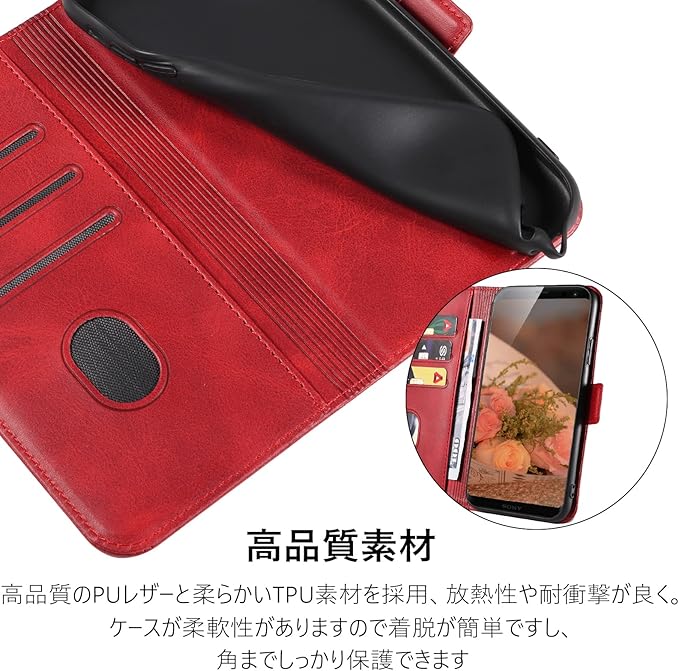 【サイドマグネット】サイドマグネット式、簡単に開け閉めができるから、片手で開きたい方にもとても便利です。カバンに置いているうちも、マグネットでしっかりしているので、xperia xz3 手帳型ケースが開いてしまうことも心配いりません。また、.はso 01l ケースの側面にあり、カード面を直接に接しないので、磁気カード類が壊れる心配はありません。