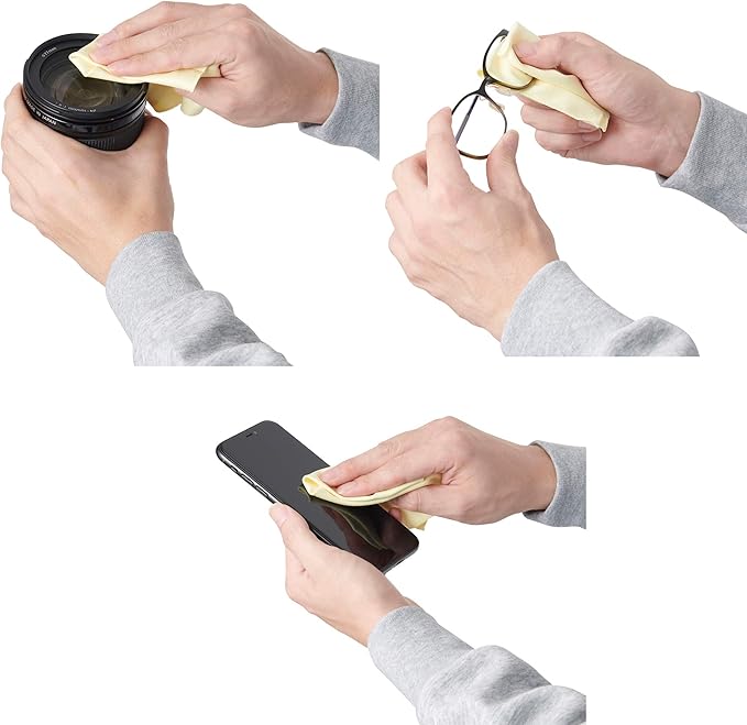 カメラレンズ・フィルター・パソコン画面・モバイル機器・メガネなどのお手入れに。皮脂・指紋・水滴・汚れをスッキリふき取るマイクロファイバークロス。