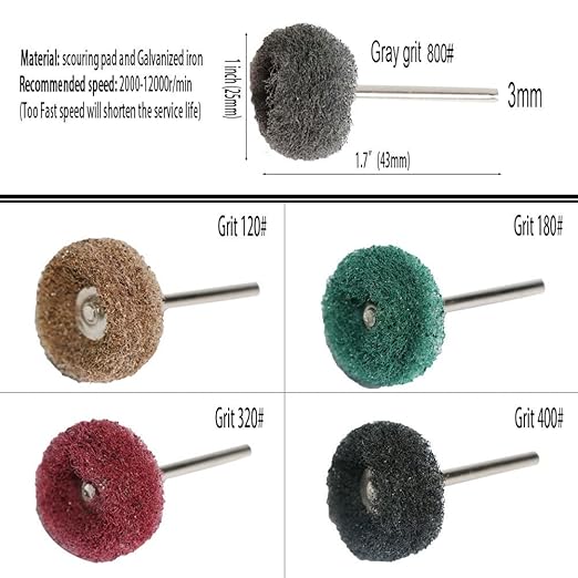バフホイールの直径: 約1インチ (25mm) 。シャンクは3mm (約1/8インチ)。3mmのマンドレルに取り付けられた研磨ホイールは、ほとんどのロータリーツール、ポリッシャー、ハンドドリルなどに適合します。