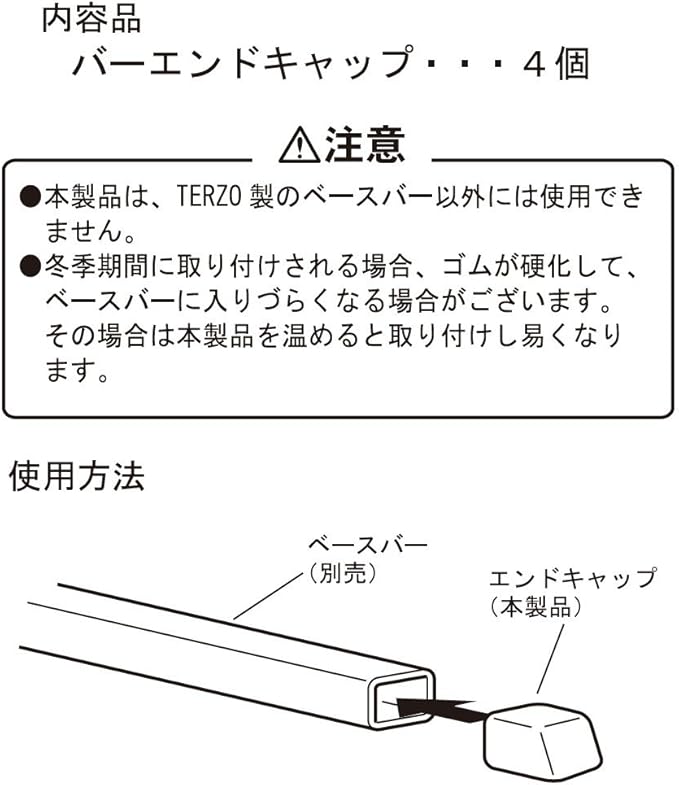 本製品は、Terzo製のスクエアベースバー用のエンドキャップです。