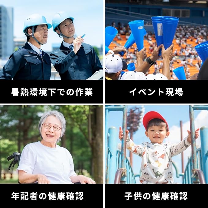 【こんなシーンで】工事現場など暑熱環境下での作業、イベント会場、高齢者の安全管理、子供の安全確認に。