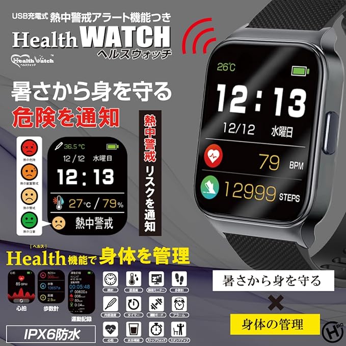 熱中症 ヘルスウォッチ 熱中症指数計 腕時計 測定器 熱中症計 温湿度計 アラーム・ライト・振動 バイブレーション 心拍 睡眠 歩数計 タイマー 大画面 計 湿度計 屋内 屋外 室内 外 デジタル 工事現場 学校 オフィス 熱中症対策 | oioioichan