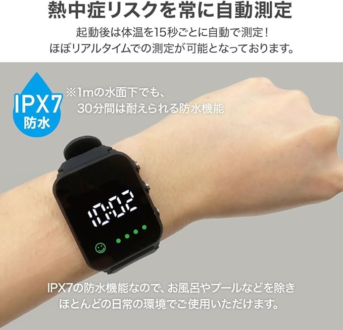 ヒロコーポレーション 熱中症指数計 熱中症対策 熱中症計 熱中アラーム アラームバンド 15秒ごとに自動で測定 音・色・振動 腕時計型 時計機能 持ち運べるポータブルリストバンド型 防水 5~7日連続使用 1個 | oioioichan