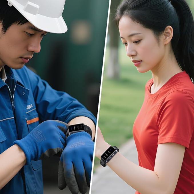 リストバンド型なので労働現場やオフィス、住宅など場所を気にせず装着できます。