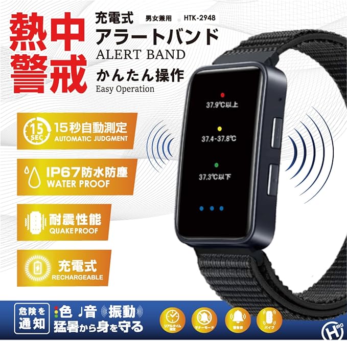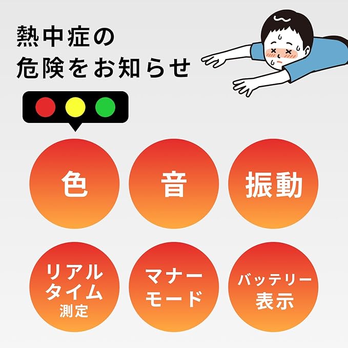 【腕につけるだけ】熱中症対策に!色・音・振動で危険を通知し、猛暑から身を守る!