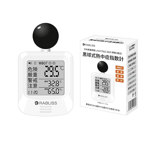 【厚労省基準に対応したモデル】2025 熱中症指数計 黒球式 WBGT測定器 熱中症計 WBGT計 熱中症 指数測定器 WBGT 測定器 熱中症対策グッズ 農作業 携帯 高齢者 大人 現場 長時間 計 湿度計 時計 ウォッチ 工事現場 アラーム JIS適合 モニター 屋外 屋外用 室内 黒球式熱中症指数計 (1) | oioioichan