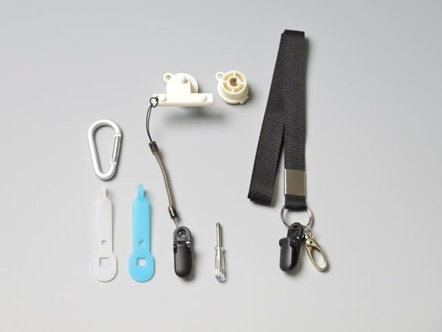 付属コンポーネント 携帯に便利なカラビナ、吊り下げ用アタッチメント、三脚取付用電池フタ、ドライバー