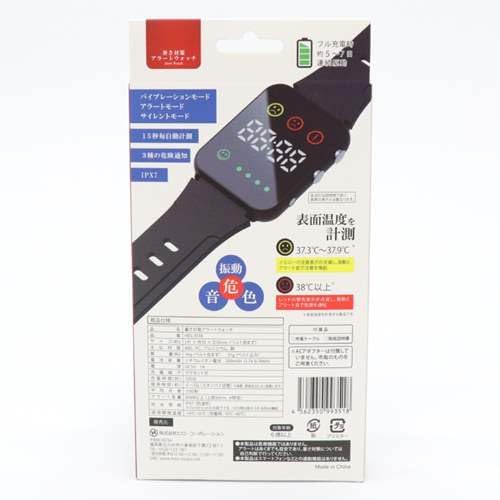 【仕様】電池容量:リチウムイオン電池 200mAh(3.7V 0.74Wh)、電源:DC5V 1A、充電端子:マグネット式、充電時間:約120分、使用時間:約5~7日(スタンバイ状態)※保管、使用状況により変動します。平均月差: 60秒、アラーム音量:60dB以上(上部50㎝、A特性)、防水等級:IPX7(防浸形)※15㎝から1mの水面下でも、30分間は耐えられる防水機能、使用環境温度:-10℃~55℃(充電時:10℃~40℃)